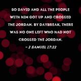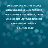 So David and all the people with him got up and crossed the Jordan. By daybreak, there was no one left who had not crossed the Jordan.