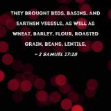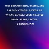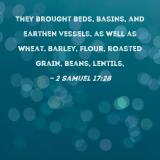 They brought beds, basins, and earthen vessels, as well as wheat, barley, flour, roasted grain, beans, lentils,