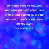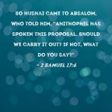 So Hushai came to Absalom, who told him, "Ahithophel has spoken this proposal. Should we carry it out? If not, what do you say?"