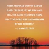 Then Ahimaaz son of Zadok said, "Please let me run and tell the king the good news that the LORD has avenged him of his enemies."