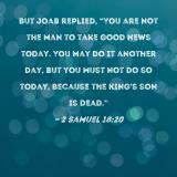But Joab replied, "You are not the man to take good news today. You may do it another day, but you must not do so today, because the king's son is dead."
