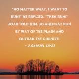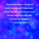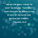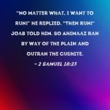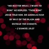 "No matter what, I want to run!" he replied. "Then run!" Joab told him. So Ahimaaz ran by way of the plain and outran the Cushite.
