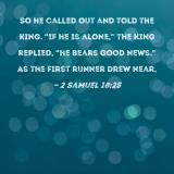 So he called out and told the king. "If he is alone," the king replied, "he bears good news." As the first runner drew near,