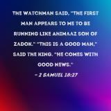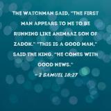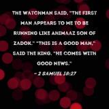 The watchman said, "The first man appears to me to be running like Ahimaaz son of Zadok." "This is a good man," said the king. "He comes with good news."