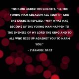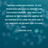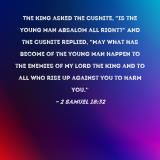 The king asked the Cushite, "Is the young man Absalom all right?" And the Cushite replied, "May what has become of the young man happen to the enemies of my lord the king and to all who rise up against you to harm you."