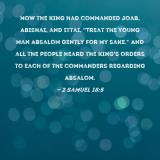 Now the king had commanded Joab, Abishai, and Ittai, "Treat the young man Absalom gently for my sake." And all the people heard the king's orders to each of the commanders regarding Absalom.