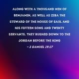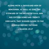 along with a thousand men of Benjamin, as well as Ziba the steward of the house of Saul and his fifteen sons and twenty servants. They rushed down to the Jordan before the king