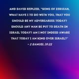 And David replied, "Sons of Zeruiah, what have I to do with you, that you should be my adversaries today? Should any man be put to death in Israel today? Am I not indeed aware that today I am king over Israel?"