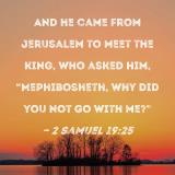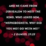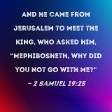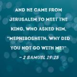 And he came from Jerusalem to meet the king, who asked him, "Mephibosheth, why did you not go with me?"