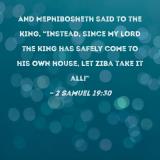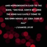And Mephibosheth said to the king, "Instead, since my lord the king has safely come to his own house, let Ziba take it all!"