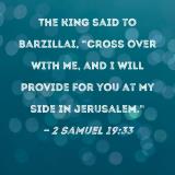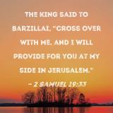 The king said to Barzillai, "Cross over with me, and I will provide for you at my side in Jerusalem."
