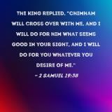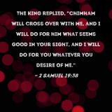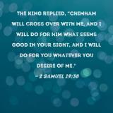 The king replied, "Chimham will cross over with me, and I will do for him what seems good in your sight, and I will do for you whatever you desire of me."