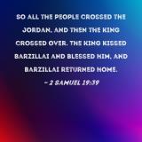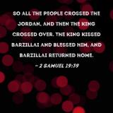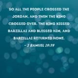 So all the people crossed the Jordan, and then the king crossed over. The king kissed Barzillai and blessed him, and Barzillai returned home.