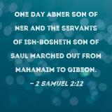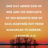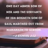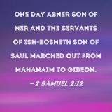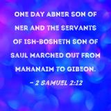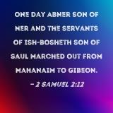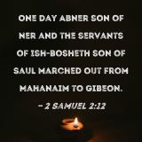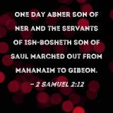 One day Abner son of Ner and the servants of Ish-bosheth son of Saul marched out from Mahanaim to Gibeon.
