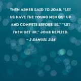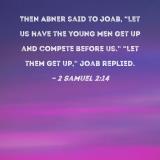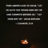 Then Abner said to Joab, "Let us have the young men get up and compete before us." "Let them get up," Joab replied.