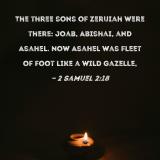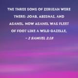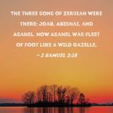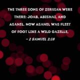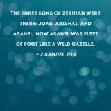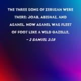 The three sons of Zeruiah were there: Joab, Abishai, and Asahel. Now Asahel was fleet of foot like a wild gazelle,