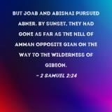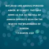 But Joab and Abishai pursued Abner. By sunset, they had gone as far as the hill of Ammah opposite Giah on the way to the wilderness of Gibeon.