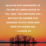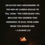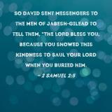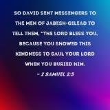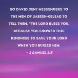 So David sent messengers to the men of Jabesh-gilead to tell them, "The LORD bless you, because you showed this kindness to Saul your lord when you buried him.