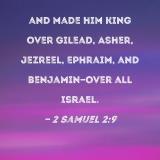and made him king over Gilead, Asher, Jezreel, Ephraim, and Benjamin--over all Israel.