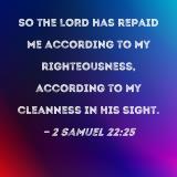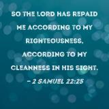 So the LORD has repaid me according to my righteousness, according to my cleanness in His sight.