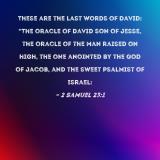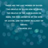 These are the last words of David: "The oracle of David son of Jesse, the oracle of the man raised on high, the one anointed by the God of Jacob, and the sweet psalmist of Israel: