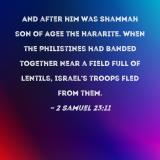 And after him was Shammah son of Agee the Hararite. When the Philistines had banded together near a field full of lentils, Israel's troops fled from them.