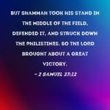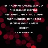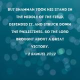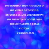 But Shammah took his stand in the middle of the field, defended it, and struck down the Philistines. So the LORD brought about a great victory.