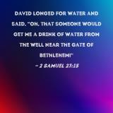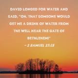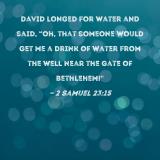 David longed for water and said, "Oh, that someone would get me a drink of water from the well near the gate of Bethlehem!"