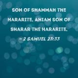 son of Shammah the Hararite, Ahiam son of Sharar the Hararite,