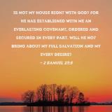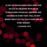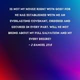 Is not my house right with God? For He has established with me an everlasting covenant, ordered and secured in every part. Will He not bring about my full salvation and my every desire?