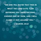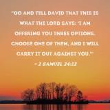 "Go and tell David that this is what the LORD says: 'I am offering you three options. Choose one of them, and I will carry it out against you.'"