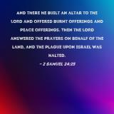 And there he built an altar to the LORD and offered burnt offerings and peace offerings. Then the LORD answered the prayers on behalf of the land, and the plague upon Israel was halted.