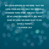 But Joab replied to the king, "May the LORD your God multiply the troops a hundred times over, and may the eyes of my lord the king see it. But why does my lord the king want to do such a thing?"
