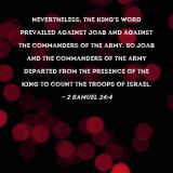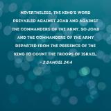 Nevertheless, the king's word prevailed against Joab and against the commanders of the army. So Joab and the commanders of the army departed from the presence of the king to count the troops of Israel.