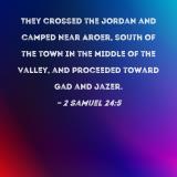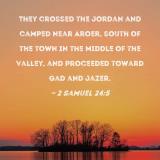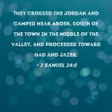 They crossed the Jordan and camped near Aroer, south of the town in the middle of the valley, and proceeded toward Gad and Jazer.
