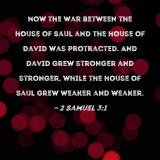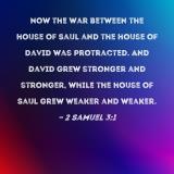 Now the war between the house of Saul and the house of David was protracted. And David grew stronger and stronger, while the house of Saul grew weaker and weaker.