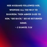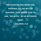 Her husband followed her, weeping all the way to Bahurim. Then Abner said to him, "Go back." So he returned home.