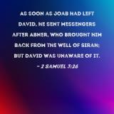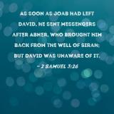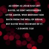 As soon as Joab had left David, he sent messengers after Abner, who brought him back from the well of Sirah; but David was unaware of it.
