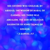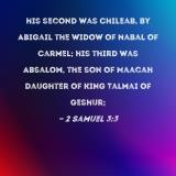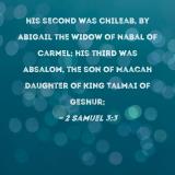 his second was Chileab, by Abigail the widow of Nabal of Carmel; his third was Absalom, the son of Maacah daughter of King Talmai of Geshur;
