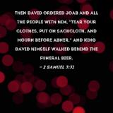 Then David ordered Joab and all the people with him, "Tear your clothes, put on sackcloth, and mourn before Abner." And King David himself walked behind the funeral bier.