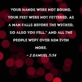 Your hands were not bound, your feet were not fettered. As a man falls before the wicked, so also you fell." And all the people wept over him even more.