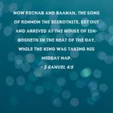 Now Rechab and Baanah, the sons of Rimmon the Beerothite, set out and arrived at the house of Ish-bosheth in the heat of the day, while the king was taking his midday nap.