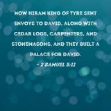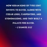 Now Hiram king of Tyre sent envoys to David, along with cedar logs, carpenters, and stonemasons, and they built a palace for David.