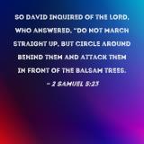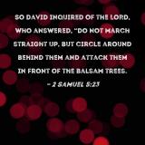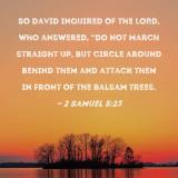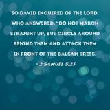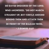 So David inquired of the LORD, who answered, "Do not march straight up, but circle around behind them and attack them in front of the balsam trees.