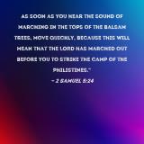 As soon as you hear the sound of marching in the tops of the balsam trees, move quickly, because this will mean that the LORD has marched out before you to strike the camp of the Philistines."