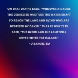 On that day he said, "Whoever attacks the Jebusites must use the water shaft to reach the lame and blind who are despised by David." That is why it is said, "The blind and the lame will never enter the palace."
