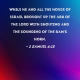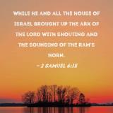 while he and all the house of Israel brought up the ark of the LORD with shouting and the sounding of the ram's horn.