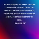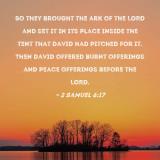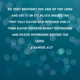 So they brought the ark of the LORD and set it in its place inside the tent that David had pitched for it. Then David offered burnt offerings and peace offerings before the LORD.