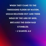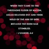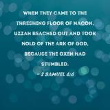 When they came to the threshing floor of Nacon, Uzzah reached out and took hold of the ark of God, because the oxen had stumbled.