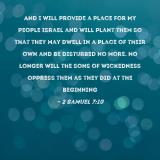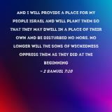 And I will provide a place for My people Israel and will plant them so that they may dwell in a place of their own and be disturbed no more. No longer will the sons of wickedness oppress them as they did at the beginning